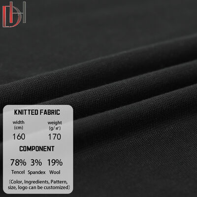 We are a professional fabric manufacturer specializing in customized elegant lightweight high-quality knitted fabric for polo T‑shirts. This 170g premium blended fabric is composed of 78% Tencel, 3% Spandex and 19% wool, offering excellent softness, smooth hand feel, good elasticity, breathability and drapability. Ideal for high-end polo shirts, casual T‑shirts, fashion tops and business apparel, it supports customized colors, weights, widths and patterns to meet various design requirements. With strict quality control, bulk production capacity and flexible OEM ODM services, we provide stable supply and competitive factory-direct prices for global garment factories, clothing brands, wholesalers and distributors.